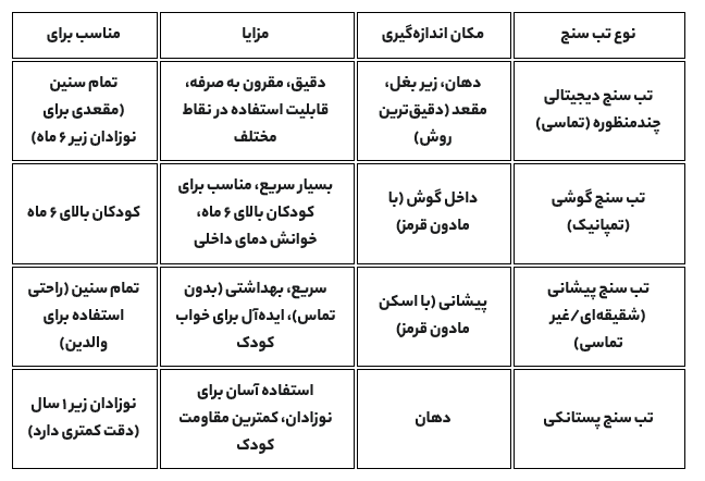 انتخاب نوع تبسنج باید بر اساس سن کودک و اولویتهای والدین در مورد دقت و سهولت استفاده صورت گیرد.
